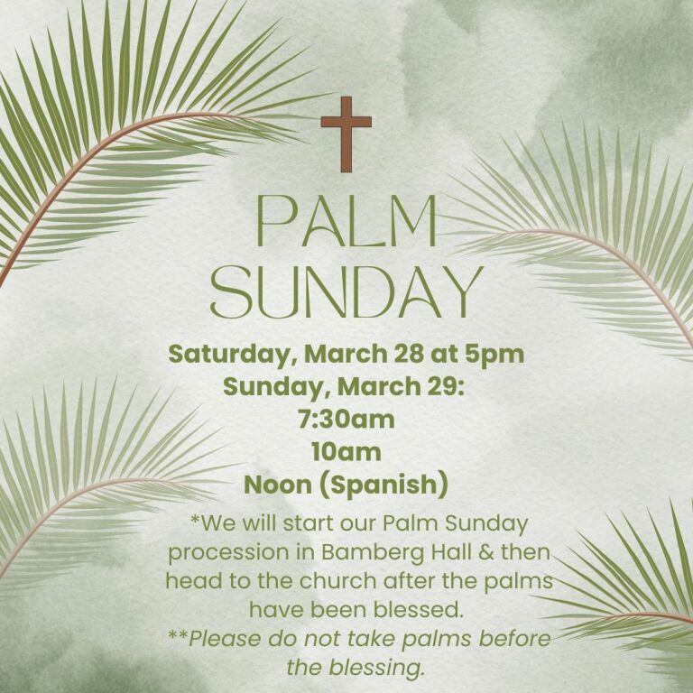 **We have nursery coverage available during weekend Mass times for 3 months- 3 yrs of age. The nursery is located on the west side on the church close to Bamberg Hall and the education building. We also love having the children participate in the celebration of Mass with us so please feel free to bring them to Mass.