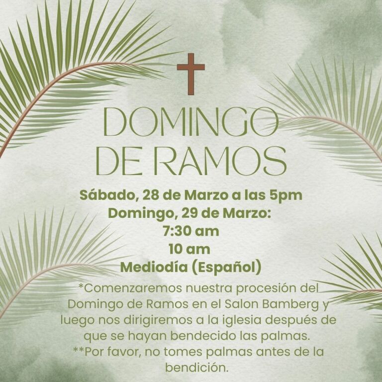 Daily Mass is celebrated at 8:45 am Tuesday-Friday in English and Thursday at 6 pm in Spanish. Communion Service is held on Mondays at 8:45am.