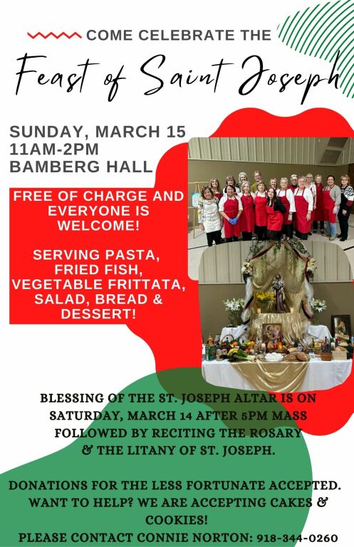 Confessions are every Saturday 3:00-4:30pm, Wednesdays during Holy Hour (6-7pm), Thursdays 5:15-5:45pm or by appointment. Call the parish office at 918.272.3710 to schedule.