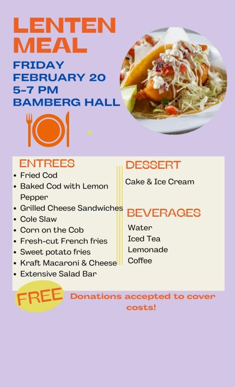 SERVING GRACE: Our next free community meal is on Thursday, February 26. Keep an eye out for volunteer signups and food donation signups. Thanks!