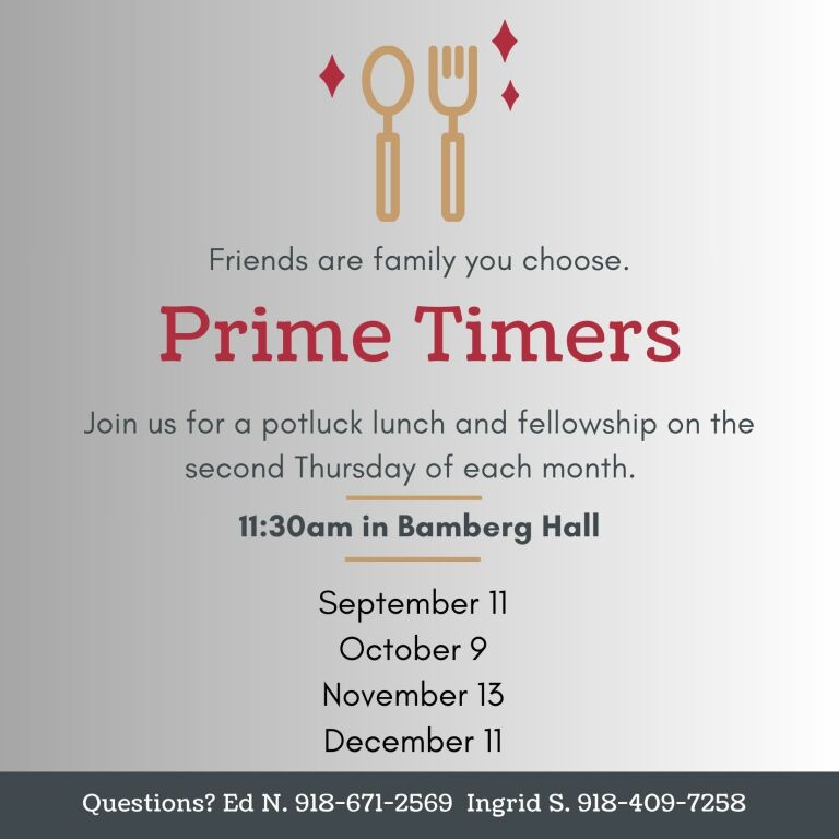 What is Prime Trimers? All parishioners who are 55+ are welcome to attend our monthly meal on the second Thursday of each month at 11:30 a.m. in Bamberg Hall for a potluck lunch and fellowship.